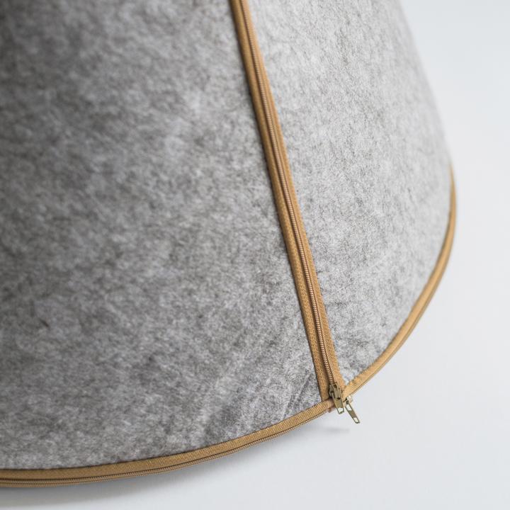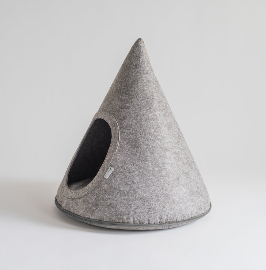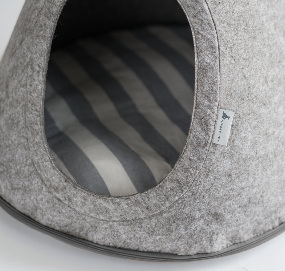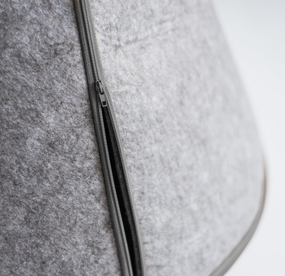 An iconic Nooee Pet classic - this lightweight, modern pet home is a wonderful and cozy hideaway. Shaped in a cone with an oval opening, it includes an extra-comfy cushion that is removable. The zipper construction enables easy assembly and access throughout for cleaning including the interior. This home can be rolled up and placed into the provided convenient bag allowing you to carry a familiar spot for your pet when traveling. Its simple and sophisticated design blends easily with your home decor.