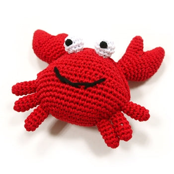 Crab designed dog crochet toy. Handmade interlace cotton thread, designed to be flexible, durable, and improves dental health by removing deposits of calculus. Add all that with a squeaky inside means hours of fun!