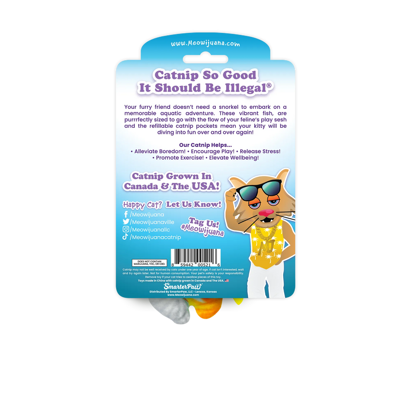 Fill each toy’s refillable pocket with Meowijuana® catnip, seal it up, and let your cat pounce, kick, and play! Swap out the catnip as needed for endless excitement. Always supervise playtime.
