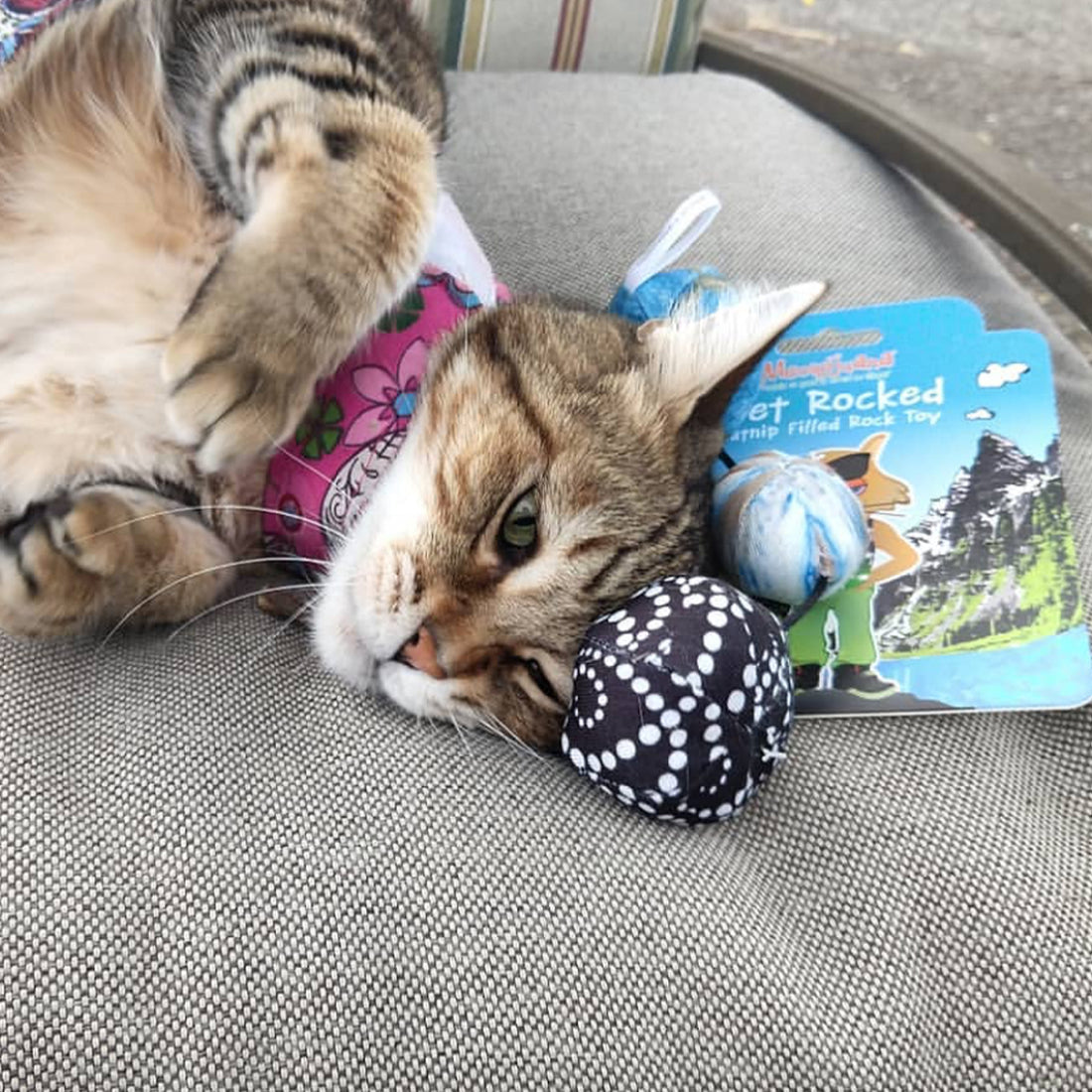 Want to rock your cat's world today? Make your kitty see triple with our curiously playful, durable, ready to go, string of stones toy. These rocks are easily batted around in a frenzy and are a natural way to fulfill your cat's instinctual desire to chase, pounce, and play. Already stuffed with our dope 'nip, these rocks will roll your cat into a whole new mewniverse. Rock on kitties!!