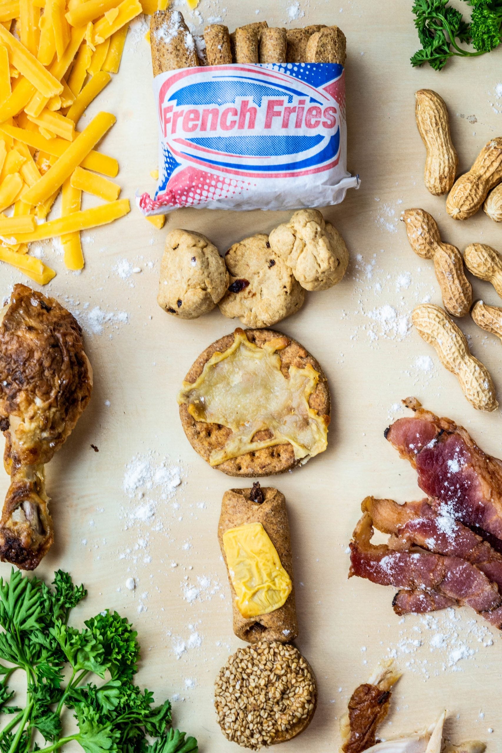 Indulge your furry friend in a Mini Bacon Cheeseburger, French Fries, Mini Chicken Wrap, Pizza, and Yogurt Cookies that are so good, you might find yourself tempted to sneak a bite (but we won’t tell!). Handmade with love in the USA, these treats are not just delicious but also made with the finest ingredients to keep your pup happy and healthy.
