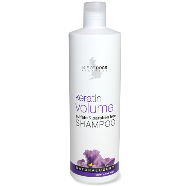 Our Keratin Volume shampoo is gentle, sulfate and paraben-free, and helps make the coat look and feel thicker, fuller, and plusher. Keratin helps strengthen the hair and builds volume and fullness.