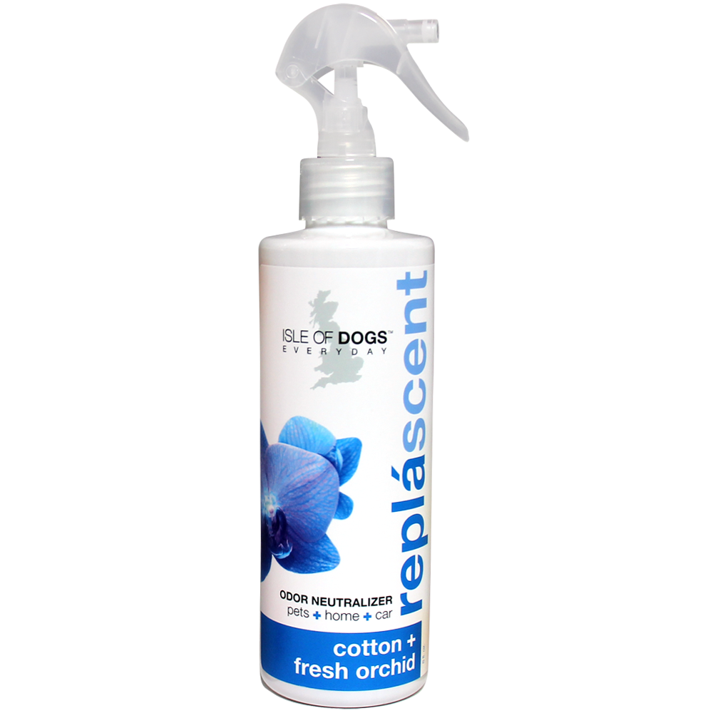Replace the scent by using our Repláscents, odor-neutralizing sprays for your dog and home; neutralizing bad odors and replacing them with a subtle fragrance. Repláscents offer an alternative to perfume and home sprays, which are not safe for application directly on your dog's coat. These products can also be applied around the house, onto bedding, and in the car.