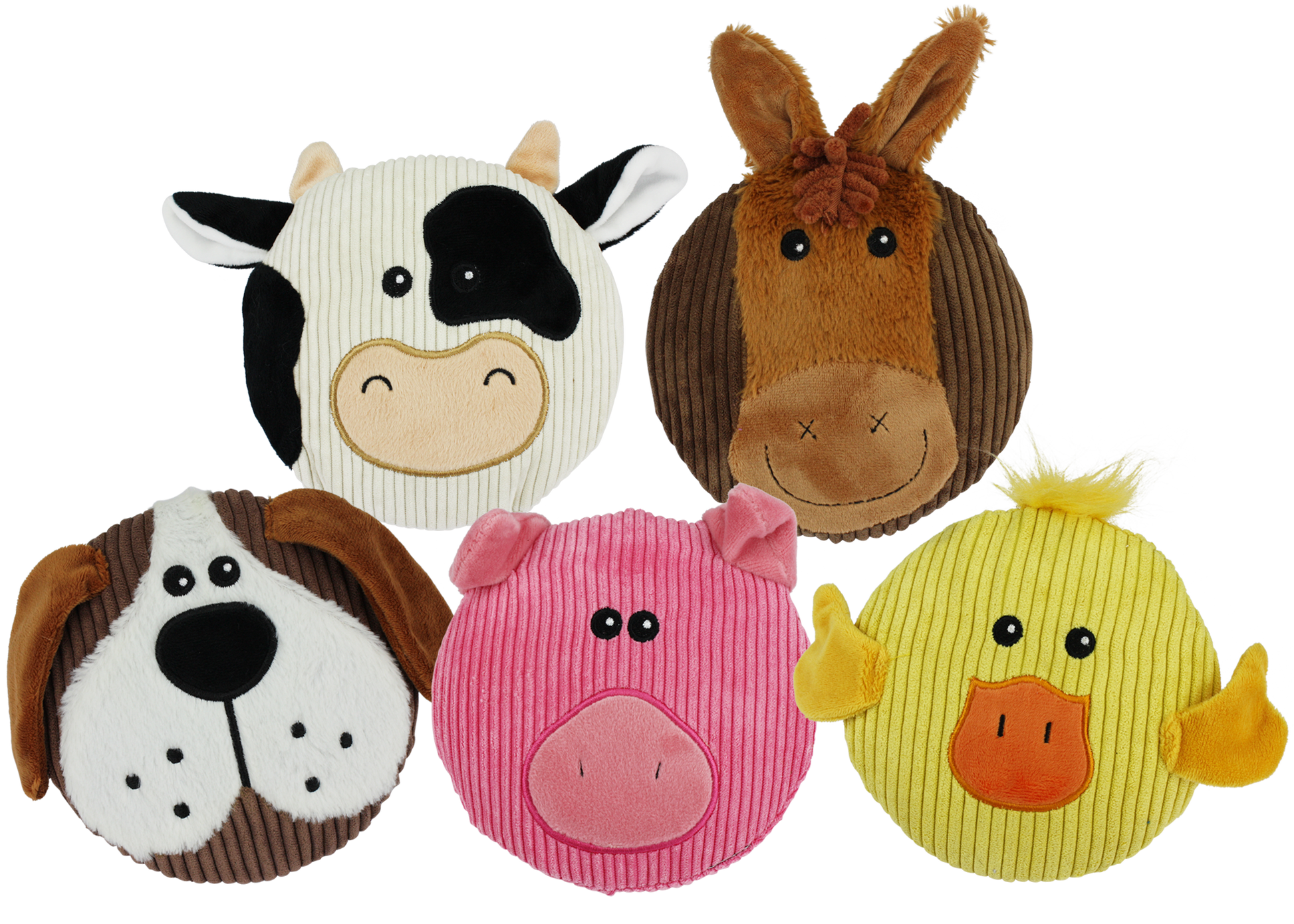 Multipet sub-woofer toys are one giant squeaker! These 7-inch disk-shaped squeakers are covered in soft corduroy with fun Animal faces. Available in dog, Duck, cow, horse, sheep and pig. Multipet Sub-Woofer Duck, 7" Squeaking Dog Toy.