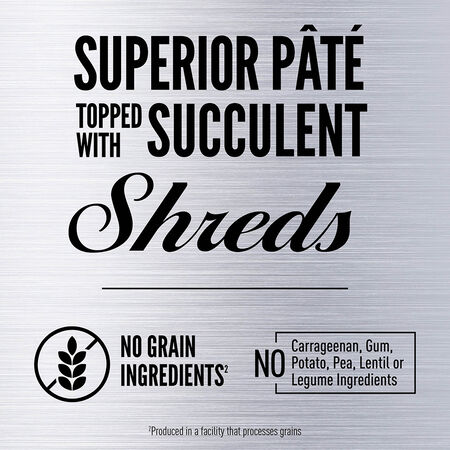 - This diet is a high-quality pâté of poultry and fish topped with succulent shreds of chicken.