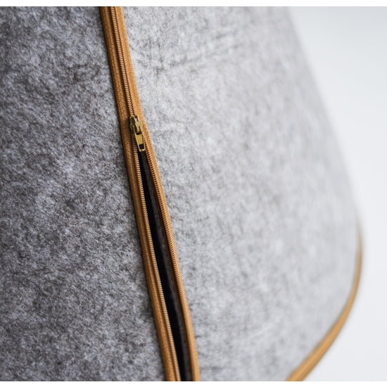 An iconic Nooee Pet classic - this lightweight, modern pet home is a wonderful and cozy hideaway. Shaped in a cone with an oval opening, it includes an extra-comfy cushion that is removable. The zipper construction enables easy assembly and access throughout for cleaning including the interior. This home can be rolled up and placed into the provided convenient bag allowing you to carry a familiar spot for your pet when traveling. Its simple and sophisticated design blends easily with your home decor.
