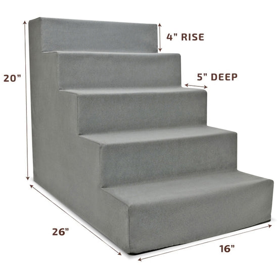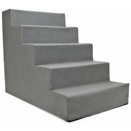 Help Fido join you on the bed or couch by climbing up these pet stairs. Just place it next to the couch, bed, or chair, and your pet can climb up the five steps to cuddle up next to you. This carpeted mini-staircase is perfect for dogs and cats and is lightweight and portable. It is crafted of foam, with a removable fabric cover that can be machine washed. It is also rust, slip, UV, and skid resistant. The 5-steps is great for mid-size dogs and cats to access sofas, couches, chairs, and beds.