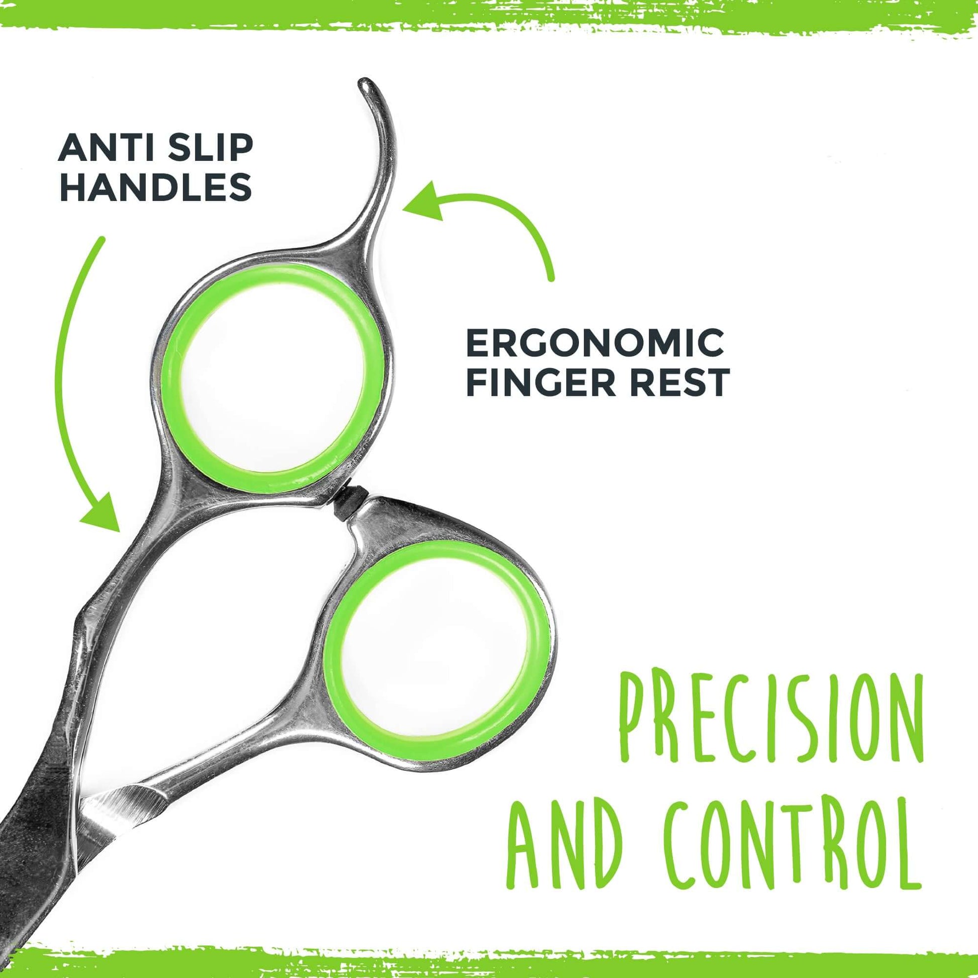 Recommended by professionals: Pet groomers give these dog grooming shears two thumbs up because of their effective, safe, and ergonomic design.