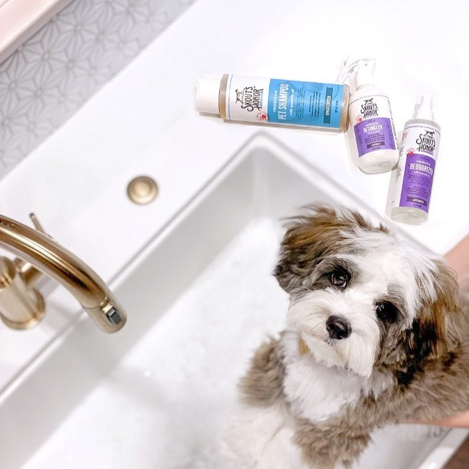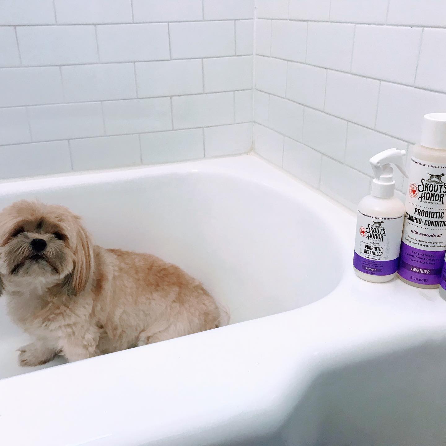 Skout's Honor Probiotic Shampoo and Conditioner for best results.