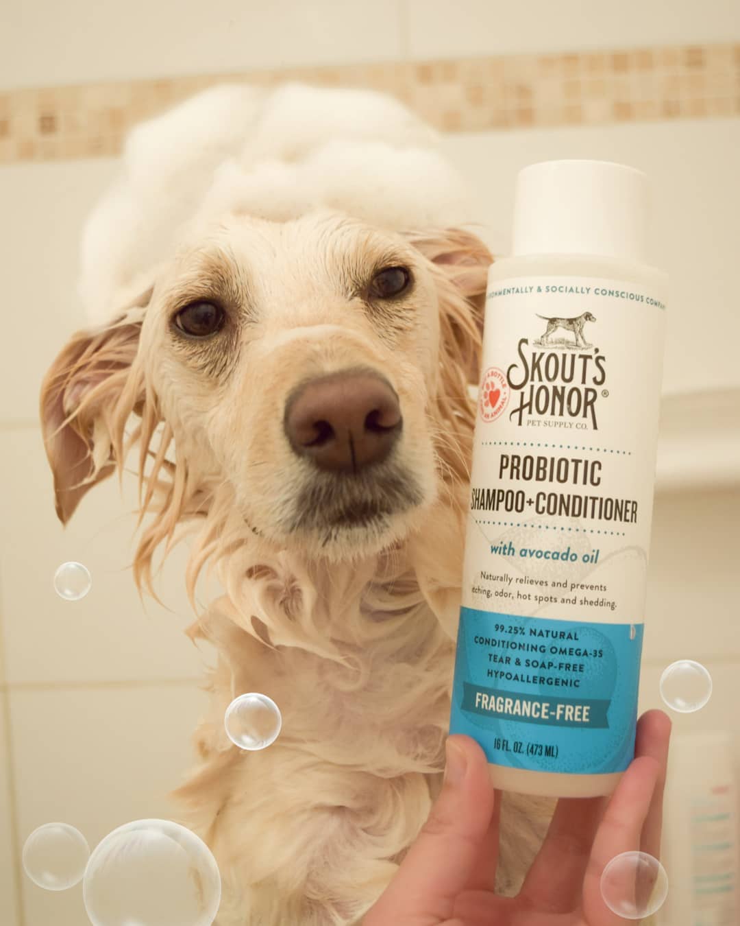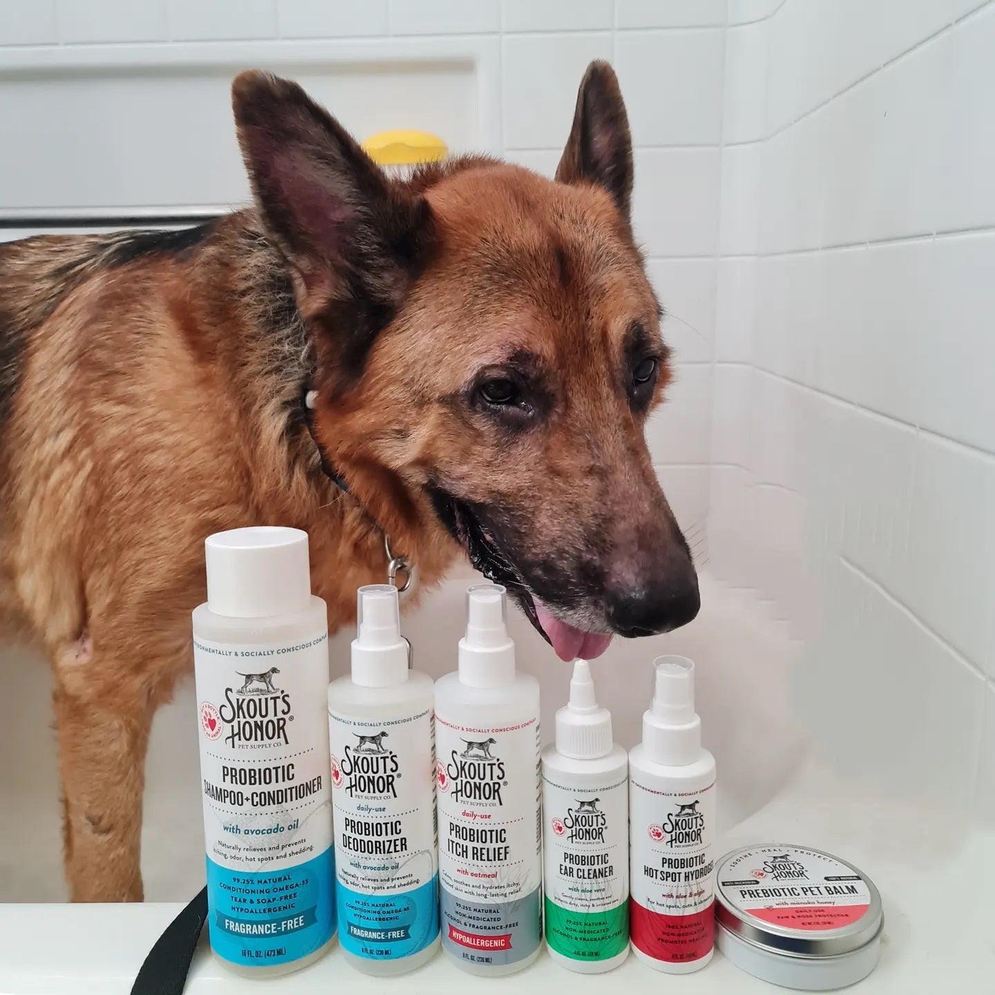 Skout's Honor Probiotic Deodorizer, Probiotic Detangler or any Skout's Honor Probiotic Wellness product for best results.