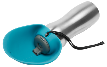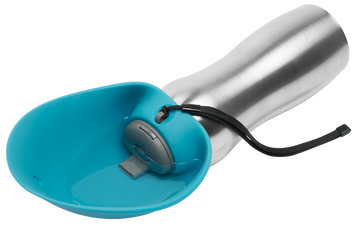 Our award winning travel water bottle and bowl is easy to use and ideal for walks, hikes and road trips. Just fold up the silicone bowl and press the quick release button to quench your messy mutt’s thirst! Unused water drains back into the stainless steel bottle after use and the bowl folds back over the bottle for easy portability.
