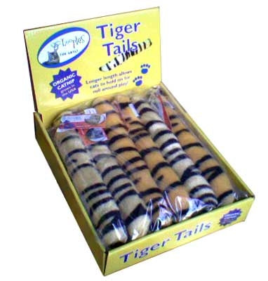 Tiger Tails are filled with Organic Catnip. Their long design is great for cats to roll and play with. Comes in assorted Tiger colors,