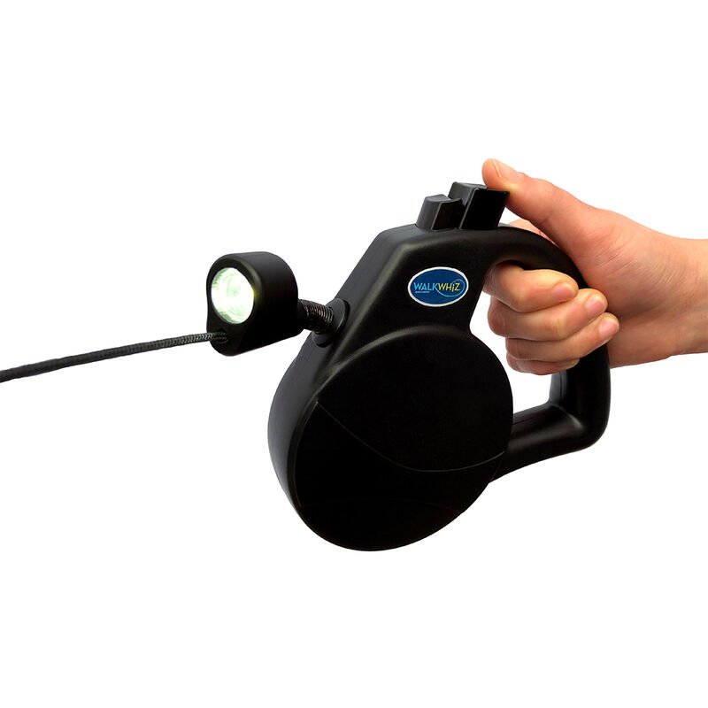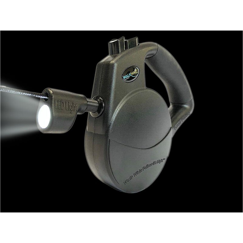 The WalkWhiz Follow Me Light Leash is made to last. Inside each leash is a rust-proof retraction spring that will smoothly retract in any condition even when wet and last for years without breaking. Operates on 2 AAA batteries (not included) that are easily replaced from within the handle. One size fits all.