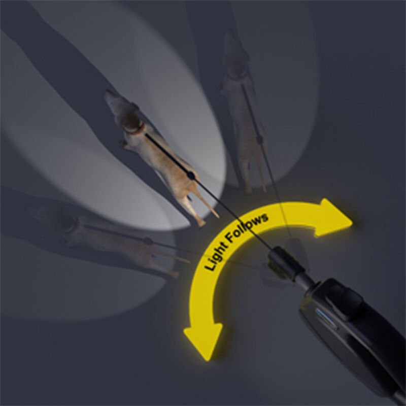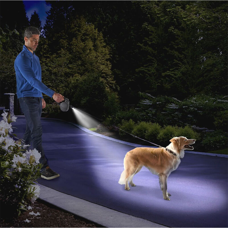 The Follow Me Light Leash comes with a single, very powerful LED that shines brightly with a wide beam, so you can see further ahead of you and to the side with greater visibility. If your pup turns in a new direction, the light will track perfectly, keeping your dog visible even in the darkest areas. See up to 20' ahead and walk with ease knowing where you're going.