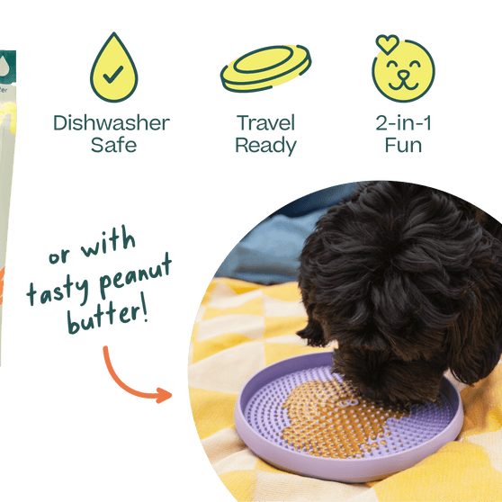 Flip for a dual-textured calming lick mat underneath.