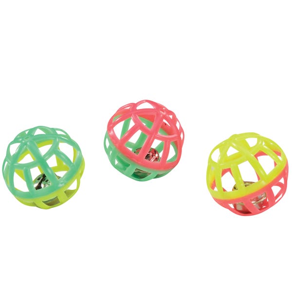 Cats love to pounce on and chase these jingling ball toys. Zanies® Lattice Ball Cat Toys are made of colorful hard plastic, with an enticing jingle bell inside.